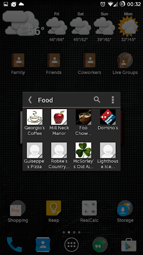 This app allows you to place shortcuts on your homescreen for your contact groups (Friends, Family, Coworkers, etc.). Clicking the shortcut will launch a folder showing the contacts in the group. As you add contacts to your groups, or remove them, the folders will always show the contacts currently in the group.