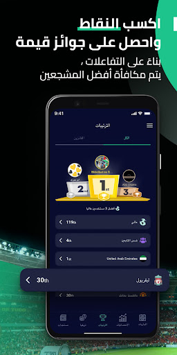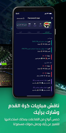 انضم إلى الشبكة الاجتاعية لمشجعي كرة القدم وتفاعل مع عشاق الرياضة. اربح المزيد من النقاط واربح جوائز قيمة من خلال توقع النتائج والإجابة على الأسئلة العامة وتقييم اللاعبين والأهداف.