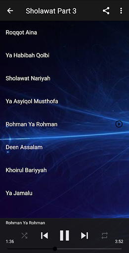 Aplikasi Kumpulan Sholawat Nabi Lengkap MP3 (100% Offline). Berisi berbagai koleksi qasidah hadroh dan berbagai lagu sholawat terbaik dengan suara nyaring dan merdu. Kualitas audio MP3 terjamin bagus, jernih dan HD.