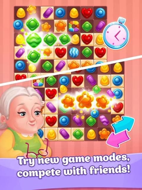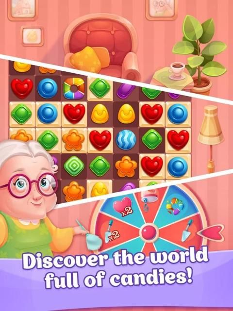 محاولة حرة المباراة 3 اللعبة "كاندي راش - حلويات البيت" الآن: جعل الجدة سعيدة! حل جميع الألغاز والحصول على مكافأة قيمة. استخدام المكافآت الخاصة بك لجعل تجربتك أفضل!
