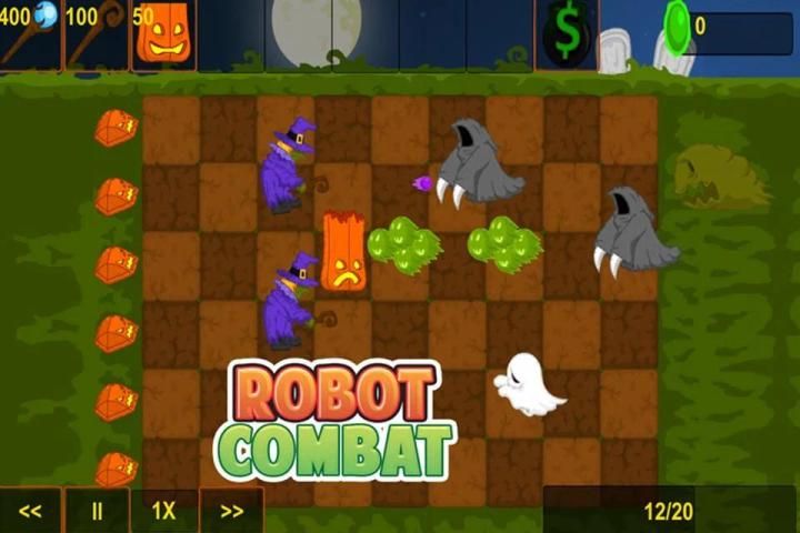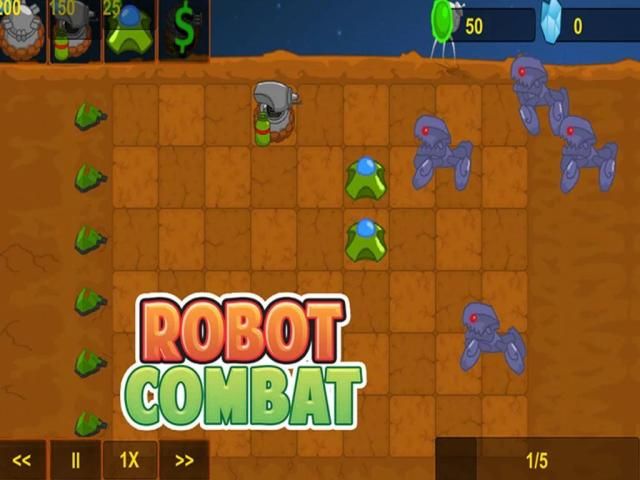 الروبوت القتال - استراتيجية مكافحة هي النباتات بسيطة مقابل نوع الكسالى من اللعبة. رفع الجيش الخاص بك، وبناء قاعدة الخاص بك لدرء هجوم المغيرين وقيادة القوة الخاصة بك إلى النصر! معركة وقتال ضد عدد لا يحصى من جحافل الروبوت. مهاجمة الغزاة وجمع الموارد اللازمة لتنمية الجيش والقاعدة.