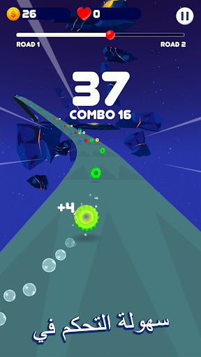 ✓ عندما تطير سفينة الفضاء عبر الطرق، توقع حركة السهام للقفز وجمع المكافآت الإضافية!