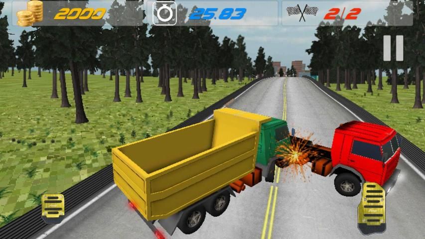 - مراقبة الشاحنات الخاصة بك مع عجلة القيادة، والتسارع والفرامل الدواسات.