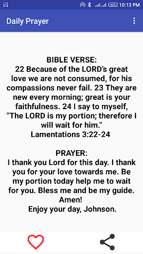 المستخدمين قادرون على مشاركة آيات الكتاب المقدس والصلوات مع الآخرين وإضافة الصلواتإلى قائمتهم المفضلة.هذا هو تطبيق صلاة قوي ويوصى بشدة للجميع.شكرا لك.يرحمك الله!