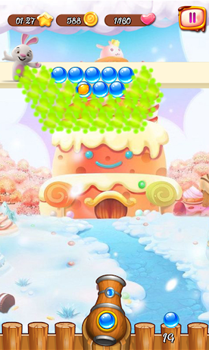cute rabbit in forest,she likes bubbles! Sometimes she needs to rescue her best friend, If you are a skilled bubble shooter, be ready to defeat the big monster fish who will eat all the bubbles!