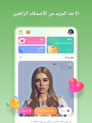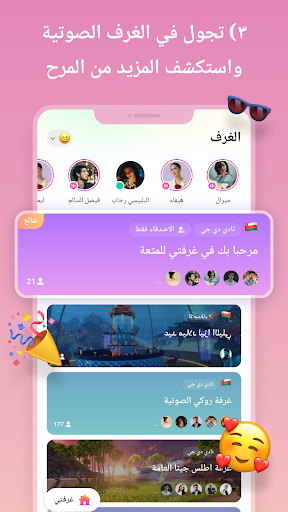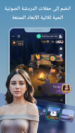 تعرف على أشخاص جدد ، واستمتع بالدردشة مع الأصدقاء في غرف الدردشة الصوتية الحية ثلاثية الأبعاد.