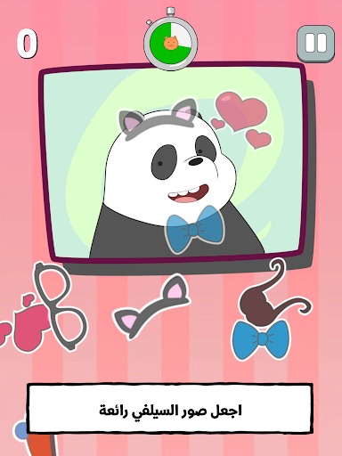 التقط صورة سيلفي لباندا ثم اسحب الملصقات على اليمين إلى وجهه لتحصل على النقاط والطاقة.