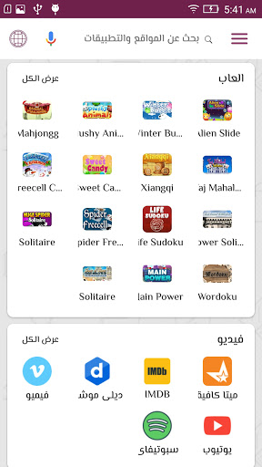 يحتوى التطبيق كذلك على مواقع البيع والشراء ومواقع الاخبار والمجلات وكذلك مجموعه كبيره من الالعاب التى يمكنك تجربتها اون لاين بدون الحاجه الى تحميلها على الجهاز واخد مساحه من جهازك .