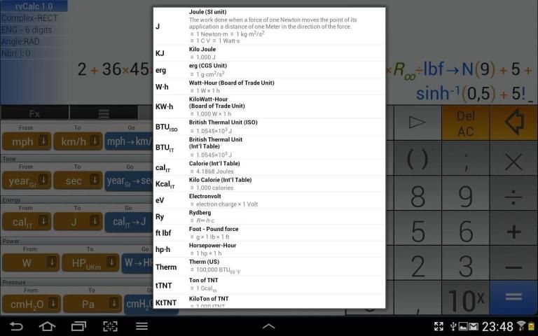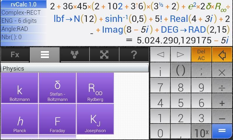▪ آلة حاسبة علمية كاملة المزايا مع الكثير من الوظائف، والرياضيات والفيزياء الثوابت، والأرقام المعقدة، وميزات لصناعة السيارات في تصحيح ومجموعة كاملة من وحدة التحويلات