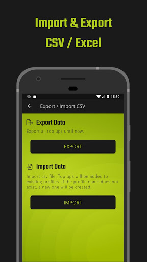 আপনি আপনার শীর্ষ আপ ডেটাটি একটি CSV ফাইলে রপ্তানি করতে পারেন। যে ফাইলটি এক্সেল, অন্যান্য স্প্রেডশীট প্রোগ্রাম বা ডেটাবেসে সহজেই আমদানি করা যেতে পারে। এটি পেশাগতভাবে পরিচালনা এবং প্রতিটি গাড়ির জন্য জ্বালানি খরচ তথ্য প্রক্রিয়া করার জন্য প্রয়োজনীয় সমস্ত তথ্য অন্তর্ভুক্ত করে। যেমন CSV ফাইলটি সহজেই অ্যাপ্লিকেশানে ফিরে আসার জন্য এবং আপনার সমস্ত জ্বালানি খরচ তথ্যটি জ্বালানি ব্যবহারের ট্র্যাকারের ভিতরে ফিরে আসে। এটি ব্যাকআপ এবং পুনরুদ্ধারের উদ্দেশ্যে দরকারী হতে পারে, অথবা যদি আপনি একাধিক ড্রাইভারগুলির মধ্যে একটি গাড়ির প্রোফাইল ভাগ করেন।