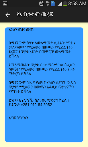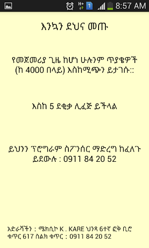 This App is used to train new drivers for theory exam in Ethiopia and also helps to refresh drivers about their knowledge of the driving rules of Ethiopia.