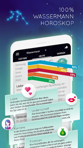 Egal ob Sie Mann oder Frau sind Wassermann, befragen Sie Ihr tägliches Horoskop, welches von Profi-Astrologen entwickelt wurde. Dieses kostenlose und tägliche Horoskop ist geeignet für Personen mit den Sternzeichen Wassermann, welche man als intellektuell, human, seriös, aussagekräftig und schlau beschreiben kann. Lassen Sie sich leiten und helfen in den Bereichen Liebe, Arbeit, Geld und Gesundheit.