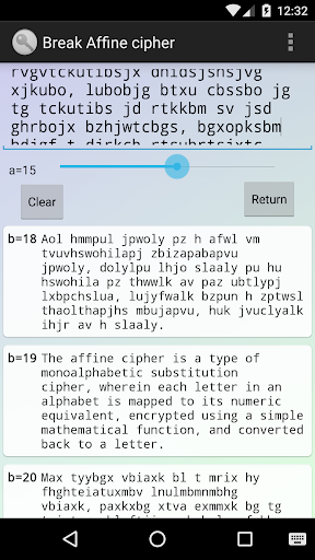 - Affine Chiffre (Kryptanalysetool ist enthalten),