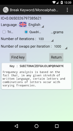 *** Die N-gramme für diese Kryptanalysetechnik wurden heruntergeladen von folgender höchst interessanter Internetseite über Kryptographie : http://practicalcryptography.com/. Texte in englisch, französisch, deutsch, spanisch, italienisch und schwedisch sind damit analysierbar.