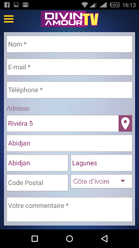 Divine Love TV ist mit Satelliten und Web Streaming erreichbar Und wird seit Israel in mehreren Sprachen sein: Französisch, Englisch, Chinesisch, Arabisch. Der Hauptsitz basiert in Brüssel. Abidjan ist nur eine Produktionsplattform. Es wird später Verbindungsbüros in den wichtigsten europäischen, amerikanischen, afrikanischen Kapazitäten installieren.
