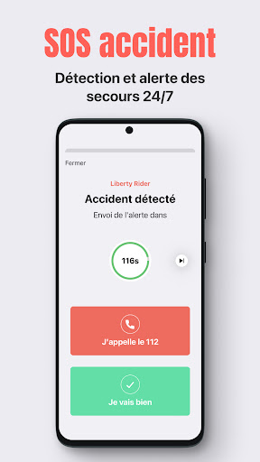 Einfach: Wenn Sie einen Unfall haben, erkennt die Anwendung ihn dank der Sensoren des Telefons und unseres Unfallerkennungsalgorithmus, Liberty Rider kann dann wissen, ob Sie fallen oder nicht.> Ein Sturz? Das zugelassene Call Center wird versuchen, Sie für 2 Minuten zu erreichen.Wenn Sie nicht antworten, werden die Rettungsdienste an Ihre GPS -Position gesendet.Es ist so einfach.