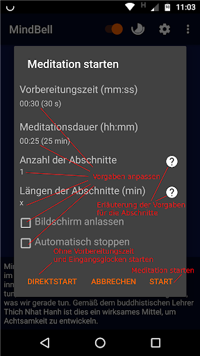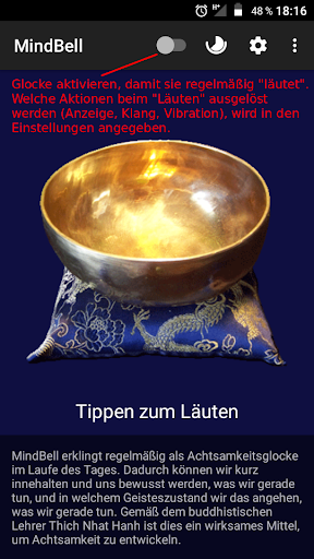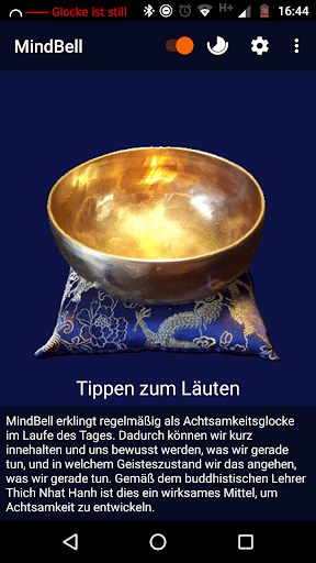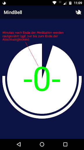 Zusätzlich kann MindBell als Zeituhr, bzw. Timer, für die Meditation benutzt werden.