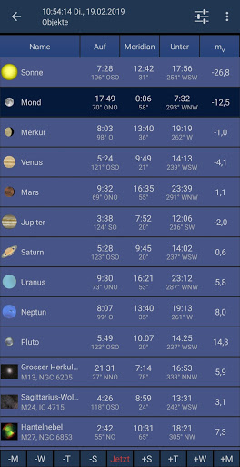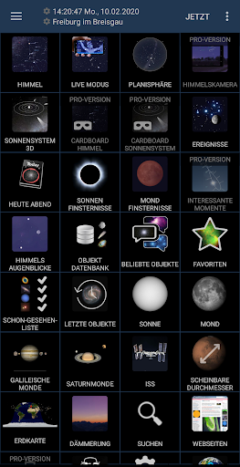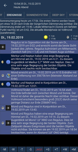 Sie möchten wissen, wann das sich das nächste Mal Mond und Jupiter am Himmel begegnen? Ob und wann die nächste Mondfinsternis von Ihrem Ort aus sichtbar ist? Wann der nächste Komet ein helles Abendschauspiel gibt? Sie möchten nie wieder ein spannendes Himmelsereignis versäumen und von Ihrem Smartphone daran erinnert werden? Sie fragen sich, was das extrem helle Himmelsobjekt kurz nach Sonnenuntergang ist? Dann ist diese App genau das, was Sie suchen!