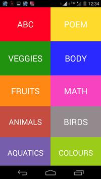 Diese sind klicken und Abschnitte lernen. Abschnitt Gemüse besteht aus verschiedenen Gemüse Vögel Abschnitt besteht aus verschiedenen Vielzahl von Vögeln Beim Anklicken auf einer von ihnen sagt es den Namen des Vogels oder Gemüse. Farbe Abschnitt aller Farb Consist Wenn identifiziert er den Namen der Farbe erzählt.