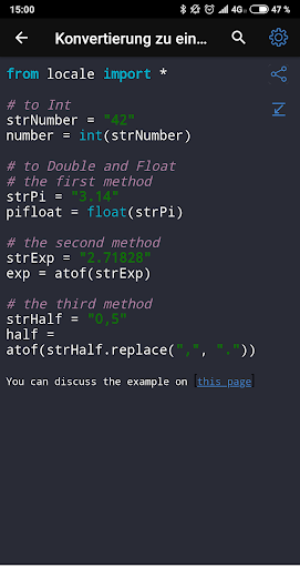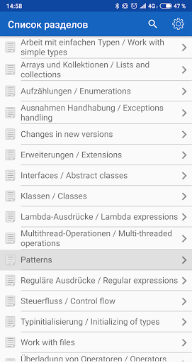 ✓ Die Anwendung ist ein gutes Werkzeug während der Prüfung oder der Vorbereitung auf das Interview, da sie einen Verweis auf häufig verwendete Operationen in verschiedenen Programmiersprachen enthält.