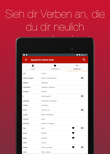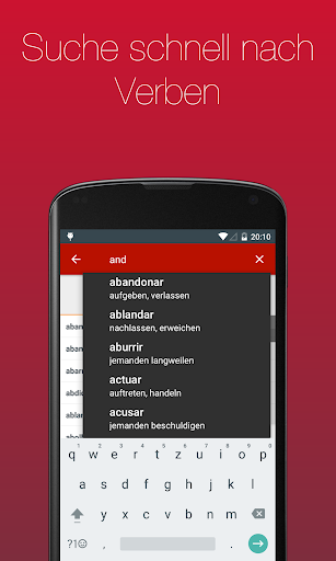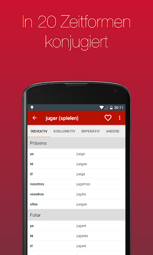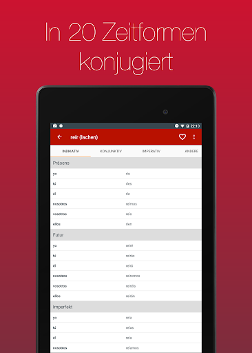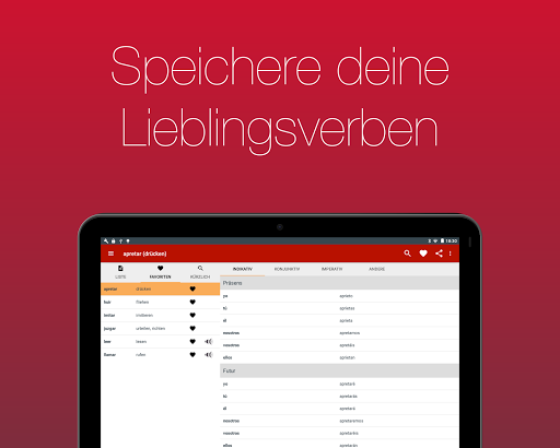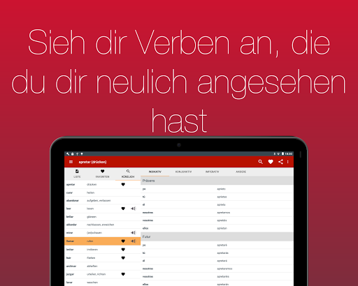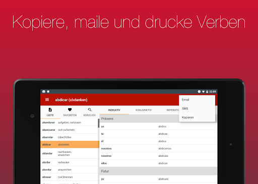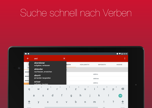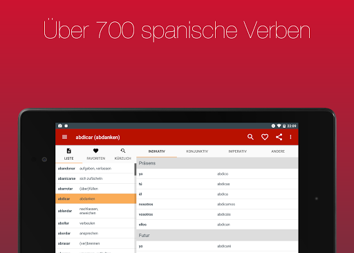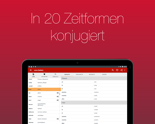 Lass dir über 700 Verben in 20 Zeiten anzeigen. Dank der einfachen Bedienbarkeit und der eingebauten Suche kannst du das von dir gesuchte Verb in Sekunden finden.