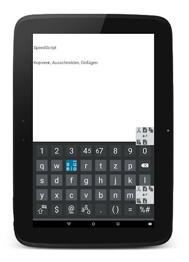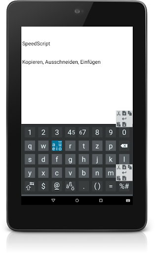 ³ sind mit SpeedScript direkt erreichbar. Ebenso spezielle Funktionen wie PgUp, PgDn, Home, End, Ausschneiden, Kopieren und Einfügen, sowie die Pfeile für die Navigation im Text.
