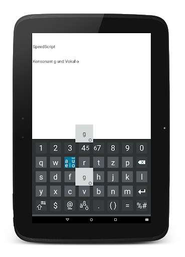 Von der blauen Taste aus kann man einzelne Vokale oder das Leerzeichen direkt schreiben.