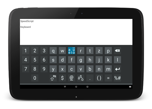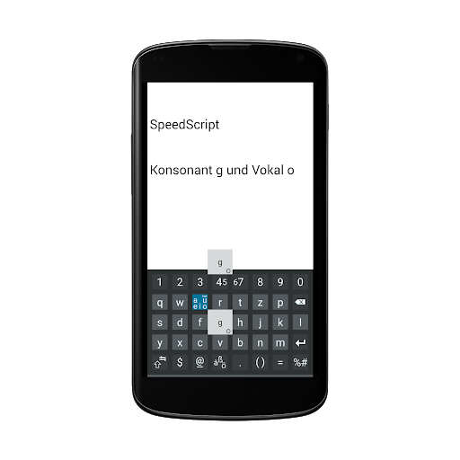 In jeder Sprache machen Vokale und Leerzeichen die Hälfte aller benutzten Zeichen aus. Nach der Logik von SpeedScript muss es möglich sein, diese häufigen Zeichen schnell und einfach zu schreiben, ohne dass man die richtige Taste suchen oder den Finger zu weit weg bewegen muss.