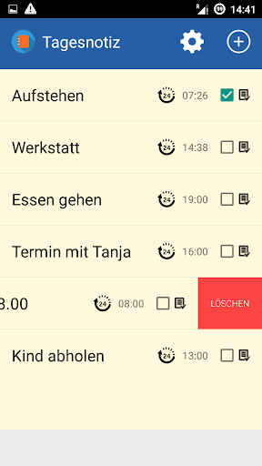 Einfach eine kurze tägliche Notiz anlegen und eine Uhrzeit setzen. Solange eine Aufgabe nicht erledigt ist, erscheint immer wieder eine Benachrichtigung ! Zusätzlich kann der jeweilige Alarm auch