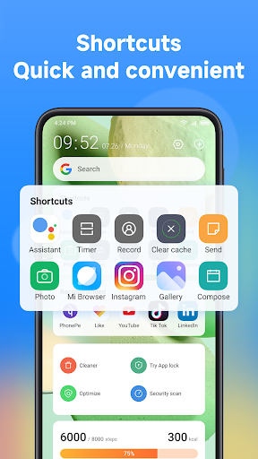 Mit App Vault können Sie bestimmte Funktionen verwenden, ohne in einzelnen Apps nach ihnen zu suchen. Es ist eine bequeme Kombination aus Abkürzungen, Karten mit wichtigen Informationen und Trendgeschichten aus dem Web. Öffnen Sie einfach Ihren Startbildschirm, wischen Sie nach rechts und finden Sie alles, was Sie brauchen. Alles, was Sie von Facebook, Instagram, Reiniger, Shareme, Scanner, Taschenrechner, Notizen und anderen Apps benötigen, ist hier. Mülldateien löschen, um den Speicherplatz freizugeben, Probleme auf Ihrem Gerät zu finden und zu beheben und Viren zu neutralisieren.