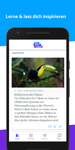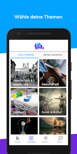 Die richtige Themenmischung aus kniffligen Lernfacts und leichter Unterhaltung liegt immer in deinen Händen. Wir hoffen, dich dabei mit der My Daily Input-App unterstützen zu können. Los geht’s!