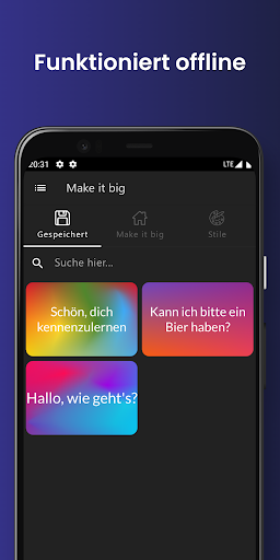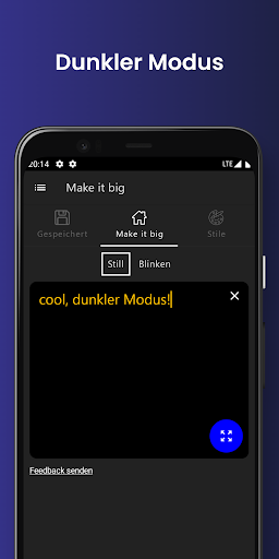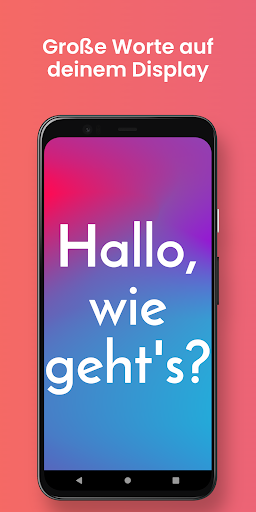 Make it big - Großer Text auf Ihrem Display ist eine großartige kostenlose Anwendung, um mit anderen Menschen in Zeiten zu kommunizieren, in denen es nicht möglich ist, sich mündlich auszudrücken. Make it big - Großer Text auf Ihrem Display können Sie großen Text auf Ihrem Smartphone anzeigen, der sich automatisch an die Menge des eingegebenen großen Textes anpasst. Make it big - Großer Text auf Ihrem Display wurde speziell entwickelt, um Menschen, die schwerhörig sind, zu zeigen, was der Benutzer sagt. Ob von der anderen Seite des Raumes oder nebeneinander, Make it big - Großer Text auf Ihrem Display kann dabei helfen, das zu zeigen, was Sie zu sagen haben.