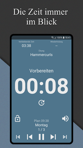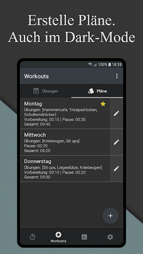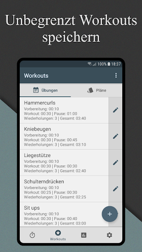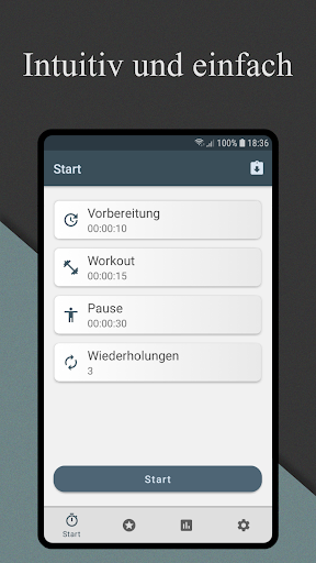 - Konfiguriere deine Workouts mit Vorbereitungs- und Übungszeit, sowie Pause und Wiederholungsanzahl