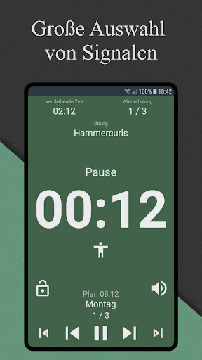 Der Interval Timer ermöglicht die Konfiguration von Trainingseinheiten mit Vorbereitungszeit, Übungszeit, Pause sowie Wiederholungsanzahl. Außerdem können auch komplett benutzerdefinierte Intervalle erstellt werden. Jede Trainingsphase ist durch eine eigene Farbe gut zu erkennen und wird mit einem individuellen Signal (Ton, Vibration oder Sprachansage) eingeleitet. So hast du die Zeit immer im Blick und kannst dein Workout Training perfekt timen. Die ideale Ergänzung für deinen Fitness-Trainingsplan.