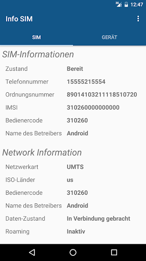 Info SIM ist die ideale Anwendung Schlüsselinformationen von der SIM-Karte, wie serielle, Betreiber, Netzwerk-Status und vieles mehr zu erhalten.