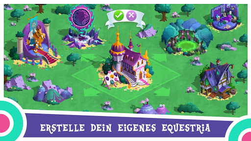• Baue ein hübsches Ponyhaus: Verschönere deine MLP-Stadt und mache sie besser als alle anderen Städtebauer da draußen mit niedlichen Häusern, bezaubernden Dekorationen und genug Magie für jedes Pony, das vorbeigaloppiert.