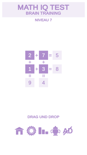 Das "Math IQ Test Brain Training" -Spiel ist ein fantastisches Gehirntrainer-Spiel und ein fantastisches Mathe-Spiel für Erwachsene und Kinder.
