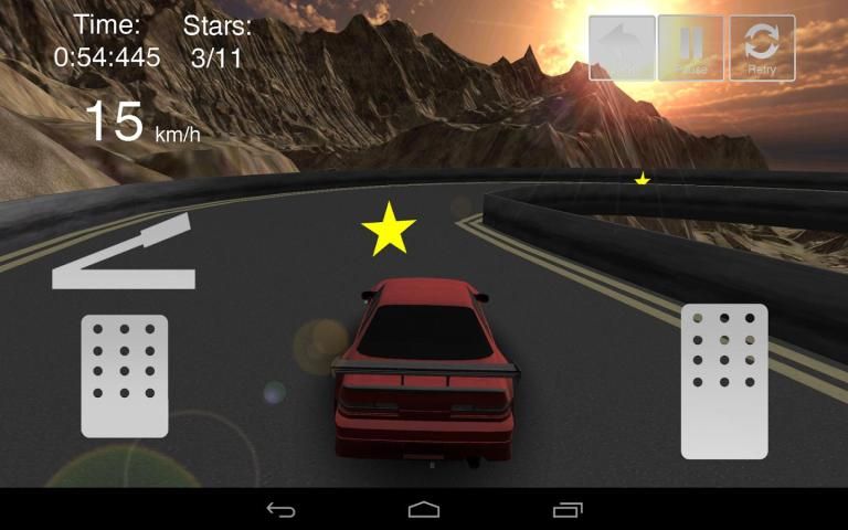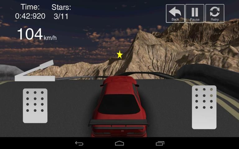 combines elements of hill climbing and 3D racing games. Basically, all you have to do is to collect all stars and climb to the top of a track below time limit. More stars at the end of a level mean more cash for new cars and tuning. In order to complete all levels you will have to tune your cars, improve your reflex and driving skill.