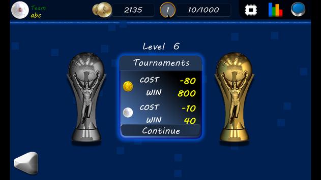 Test your skills with the very fun section of penalty kicks or direct shooting to earn points and coins.