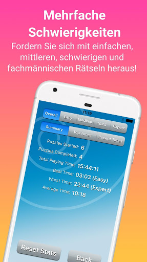 - Praktische Statistiken verfolgen Fortschritt mit Puzzles abgeschlossen und Top-Fertigstellungszeiten.