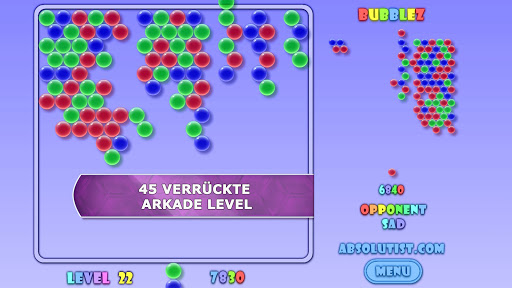 Wenn du Bubble-Spiele magst, dann brauchen wir nicht dir die Regeln dieses Arkadespieles zu erzählen. Aber wenn du noch nie solche Spiele probiert hast – jetzt ist die richtige Zeit! Dieses Multispieler Bubble Shooter ist ein grenzenloses Abenteuer und fesselndes 3-Gewinnt-Spiel. Die Regeln sind einfach: schieße die Bläschen in Gruppen von mindestens drei ab.