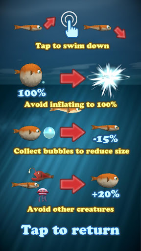 Vermeiden Sie Hindernisse, um die höchstmögliche Punktzahl zu erreichen.Tippen Sie auf den Bildschirm, um Fugu abzusteigen.Ein höherer potenzieller Punktzahl.