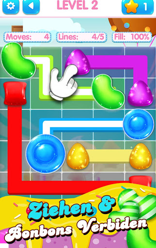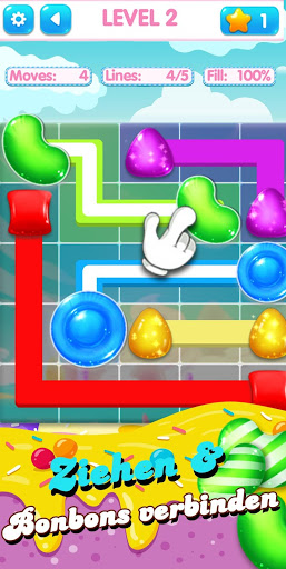 Sie müssen strategisch spielen, um alle Bonbons zu verbinden, ohne die Richtung der Bonbons derselben Farbe zu unterbrechen. Alle Level haben einen Timer und du musst das Verbindungsrätsel so schnell wie möglich lösen, um einen Stern zu erreichen und mehr Münzen zu verdienen.