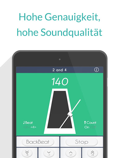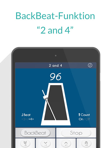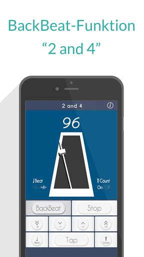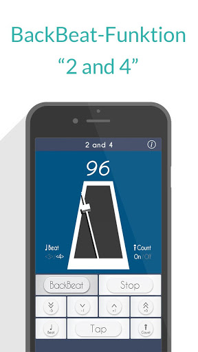 Bei einem 4/4-Metronom werden Ihnen die Zählzeiten 1, 2, 3, 4 akustisch vorgegeben, wohingegen Sie bei "2 and 4" den BackBeat, also die Zählzeiten 2 & 4, hören.