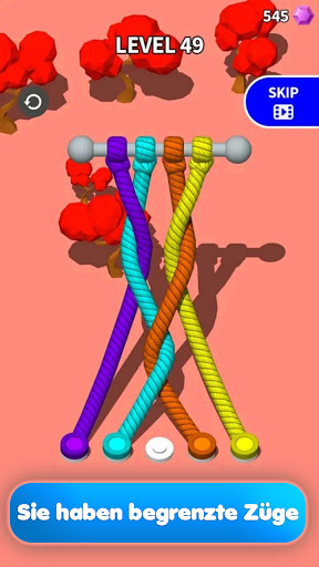 Beim Untangle-Spiel musst du alle farbigen Seile sortieren, aber achte darauf, dass du dich nicht verhedderst! Entwirre sie einfach alle, entspanne dein Gehirn und vervierfache deinen Spaß!