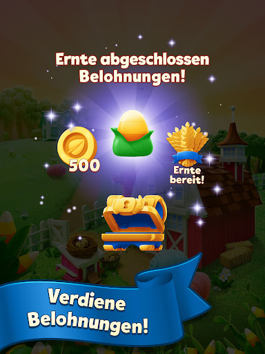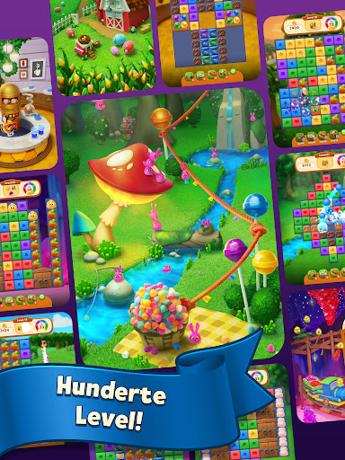 In Hunderten von lustigen Leveln erwarten dich Süßigkeiten! Lass dich verwöhnen! Tauche ein in die Rätsel auf der Candy Farm, indem du Level bestehst und Belohnungen freischaltest, um deine Farm auszubauen. Du beginnst deine Reise auf der Farm und verwendest unterschiedliche Booster, um dir Sterne zu verdienen, mit denen du Belohnungen und neue Farm-Orte freischalten kannst.