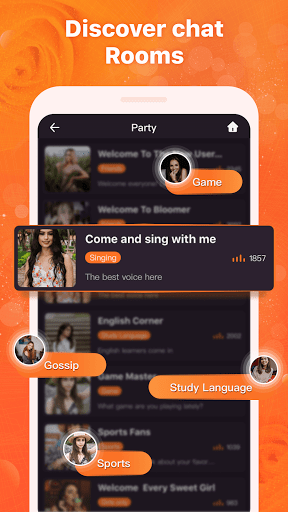 Bloomer ist eine erstklassige, zufällige Video-Chat-Plattform für Fremde, die neue Leute kennenlernen möchten. Es hat die Funktionen von Live-Video-Chat, Partyhouse und Video, die mit Fremden anrufen. Es ist eine erstaunliche Zufalls-Video-Chat-App. Sie können Partyroom schaffen oder anderen Räumen anschließen, um neue Leute kennenzulernen, mit anderen zu gelangen, mit anderen zu singen. Hier können Sie einen Videoanruf mit beliebigen Leuten von überall auf der ganzen Welt anschließen.