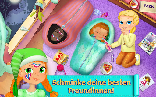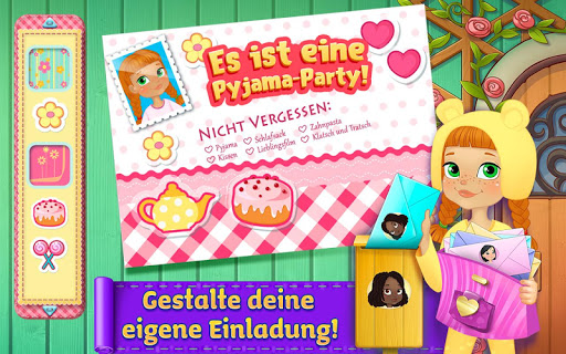 KISSENSCHLACHT! Jede Menge Spaß bei einer verrückten Kissenschlacht mit deinen besten Freundinnen! Plane die Pyjamaparty deiner Träume! Dekoriere Einladungen, gestalte deinen eigenen Pyjama, mache leckere Pfannkuchen, suche nach Süßigkeiten und noch viel mehr!