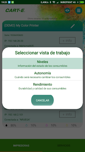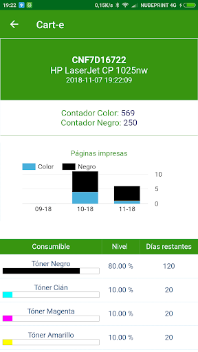 1) Conocer el nivel actual de cada cartucho y la fecha en la que previsiblemente se agotará.