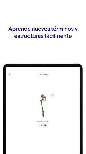 Con Daily Anatomy aprenderás todas las estructuras importantes de la anatomía humana incluyendo huesos, músculos, nervios, vasos y reparos anatómicos. En lugar de varias flechas que señalan muchas estructuras, cada estructura se presenta claramente resaltada. De esta manera, podrás identificar y memorizar fácilmente tanto su forma como ubicación.